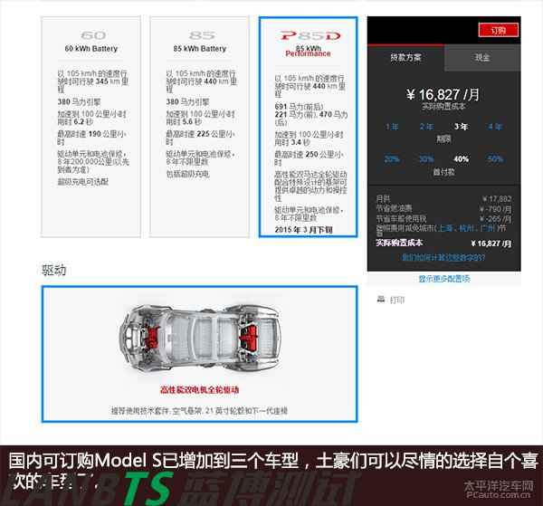 Model S官方介紹其擁有全球電動(dòng)車最長(zhǎng)的續(xù)航力,配備85kWh容量電池的Model S,續(xù)航能力可長(zhǎng)達(dá)502公里。那么就市面上的純電動(dòng)車,能和Model S續(xù)航相近的也就最近很熱的寶馬I8,其續(xù)航能力能到到500公里,另外比亞迪e6和騰勢(shì) 電動(dòng)車也能達(dá)到了300公里。而其他已經(jīng)上市的純電動(dòng)車?yán)m(xù)航能力也就在200公里左右。